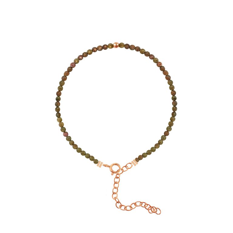 Unesite nježnost i prirodnu harmoniju u svoj stil uz Pastel Semiprecious narukvicu, izrađenu od poludragog kamena unakita i elemenata od 925 srebra. Unakit je poznat po svojim prepoznatljivim pastelno zeleno–rozim tonovima koji stvaraju savršenu ravnotežu između smirenosti i topline, dajući narukvici suptilan, romantičan izgled.