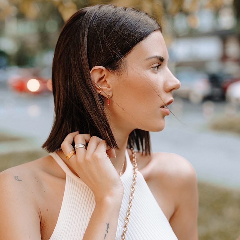 Naušnice iz Single kolekcije savršene su za sve one s više probušenih rupica koji vole kreativnost, detalje i zabavne ear stack kombinacije. Osim za ear stack, naušnice iz Single kolekcije odličan su izbor minimalističkih i elegantnih naušnica.